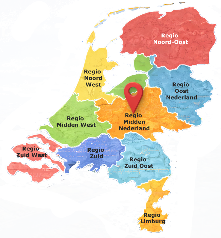 Indeling van werkgebieden in Nederland per verantwoordelijke medewerker